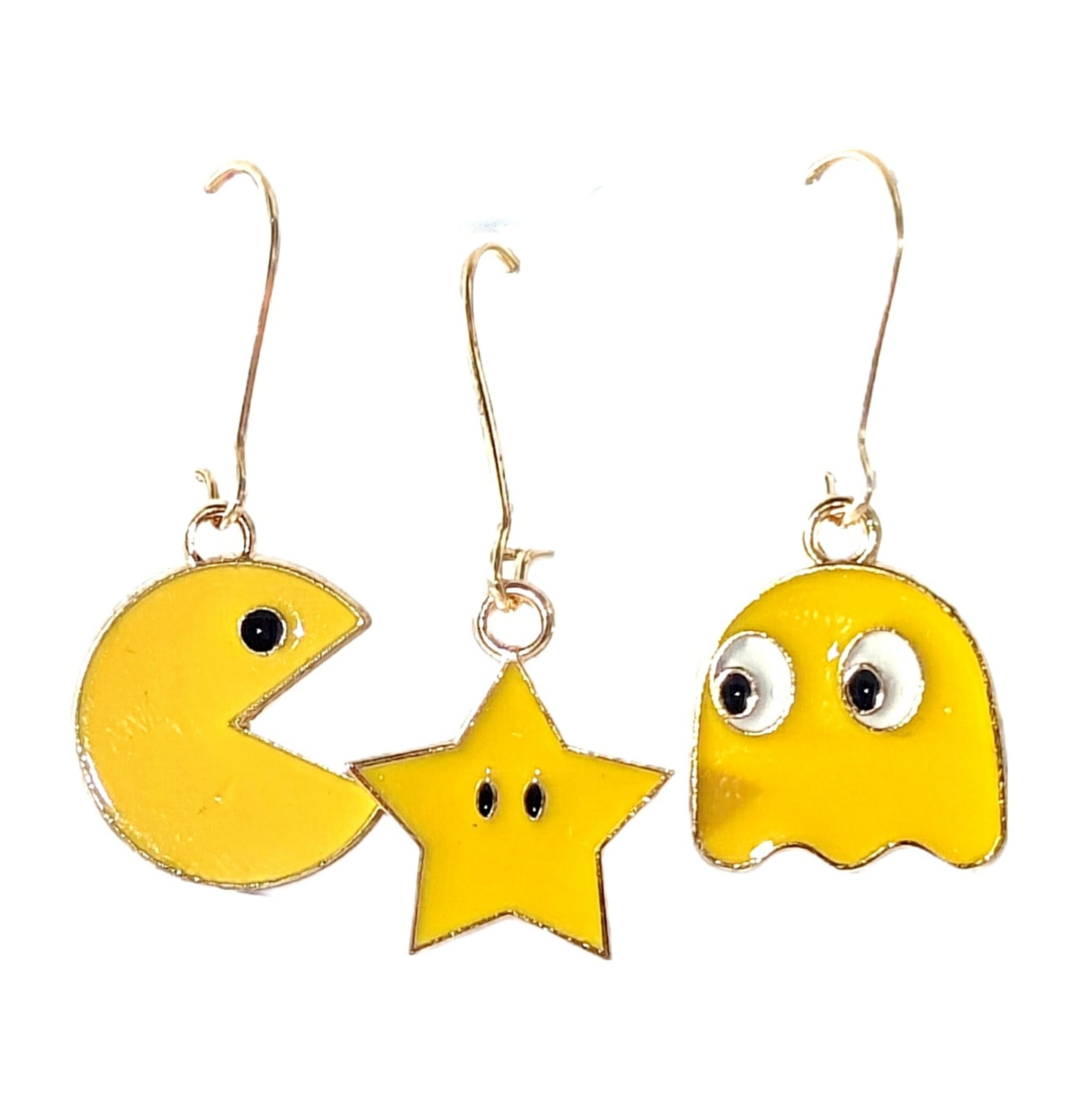 Kolczyki z zawieszkami w kształcie 3 różnokształtnych emotikonek.