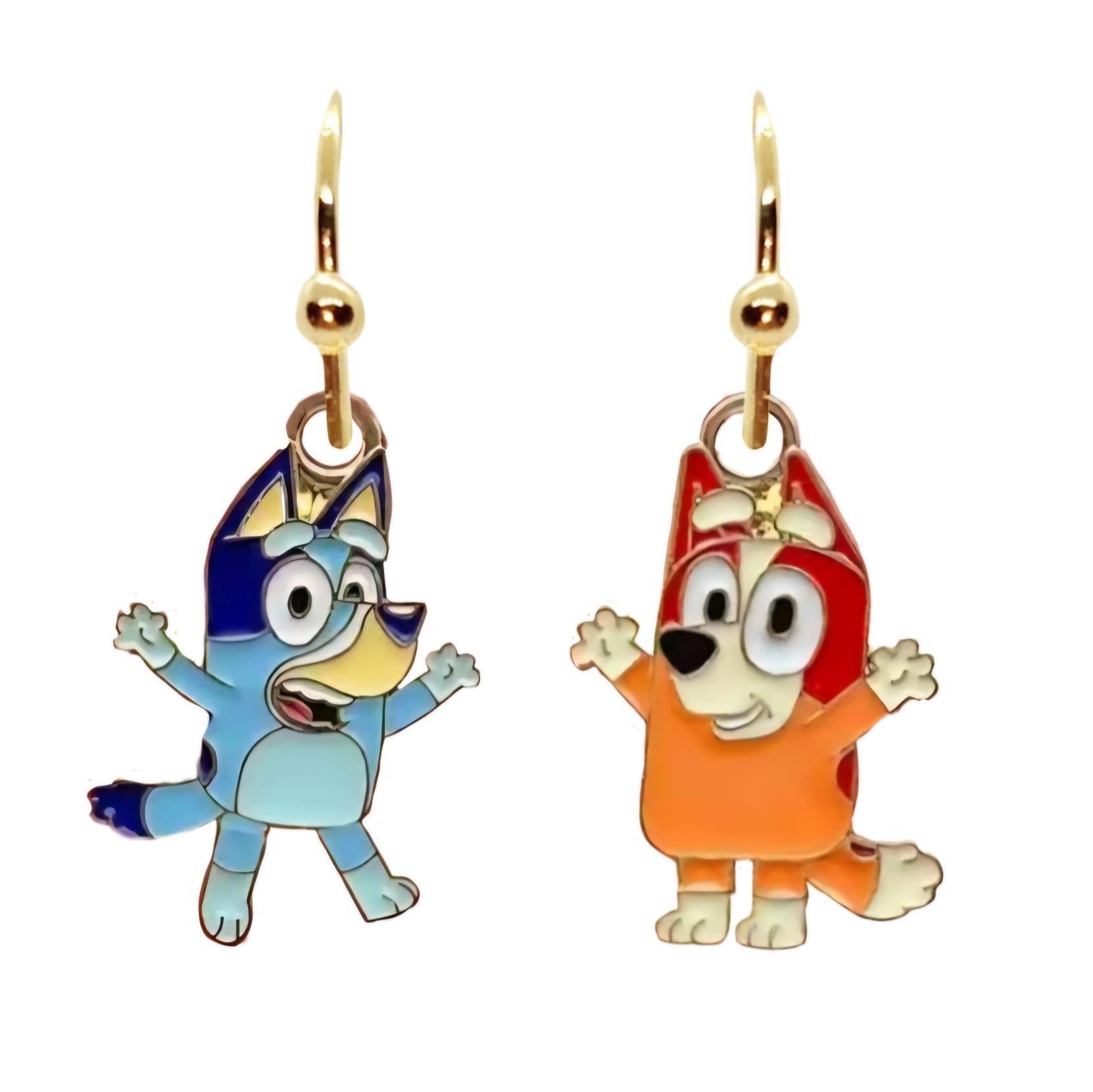 Kolczyki z zawieszkami w kształcie bohaterów bajki Bluey i Bingo.