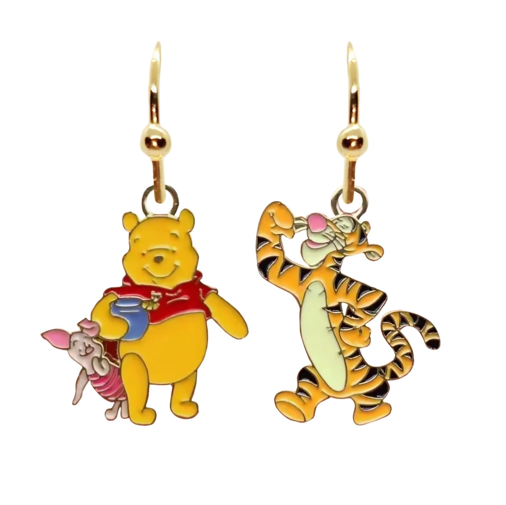 Kolczyki w kształcie uroczych Kubusia Puchatka, Prosiaczka i Tygryska.