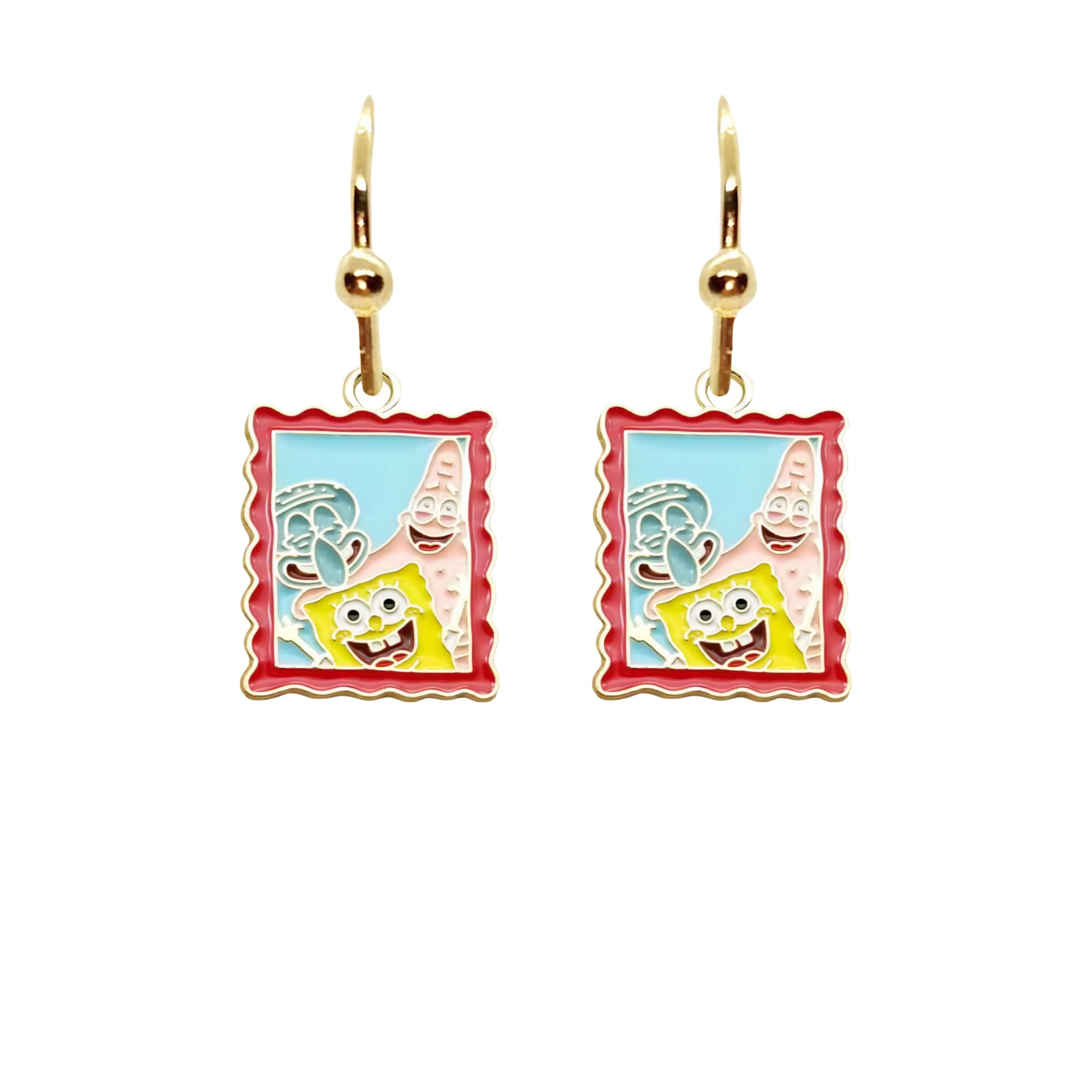 Kolczyki w kształcie obrazków z wizerunkiem Spongeboba i Patryka pochodzącego ze znanej bajki Spongebob Kanciastoporty.