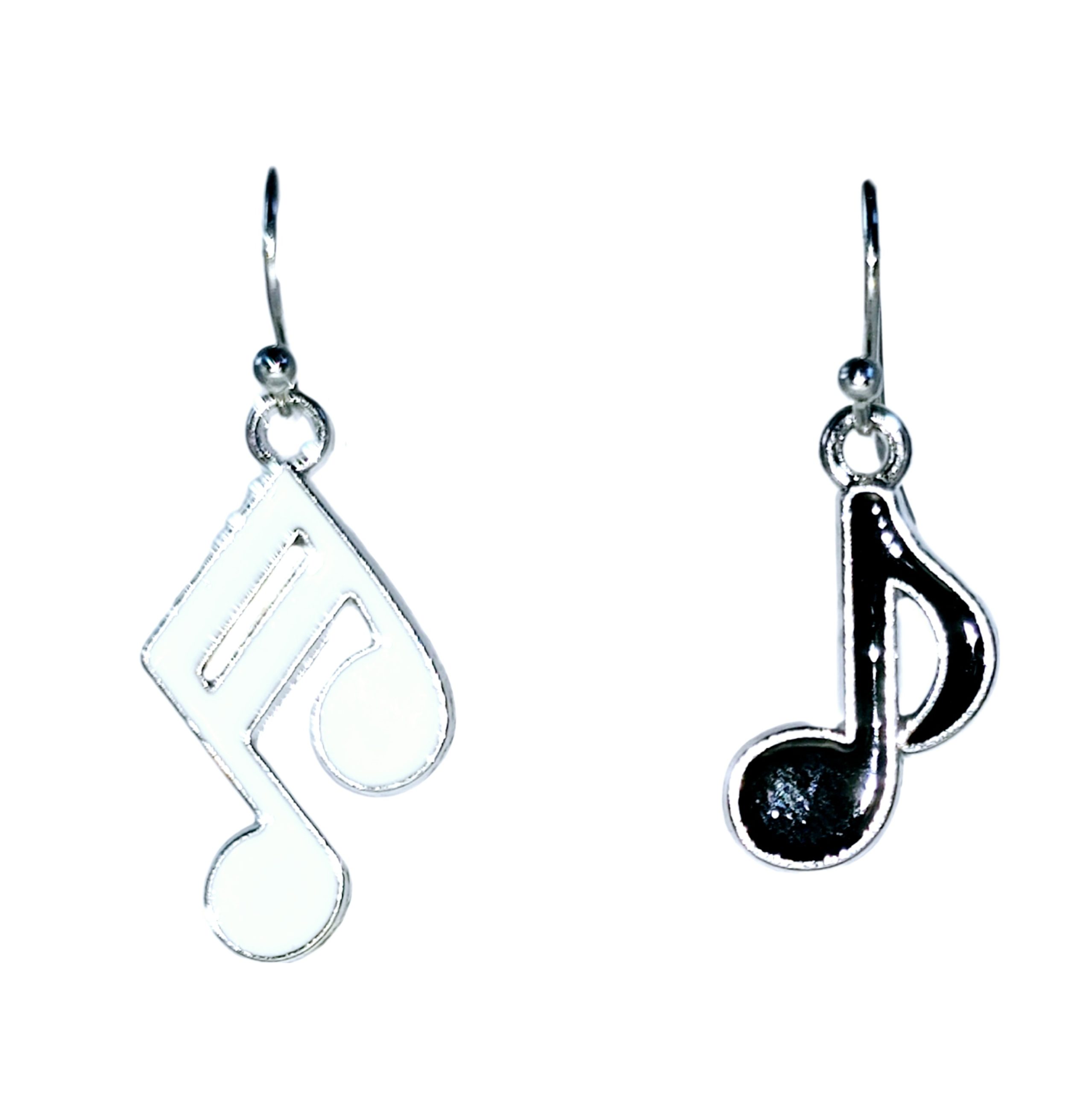 Kolczyki w kształcie białej i czarnej nutki.