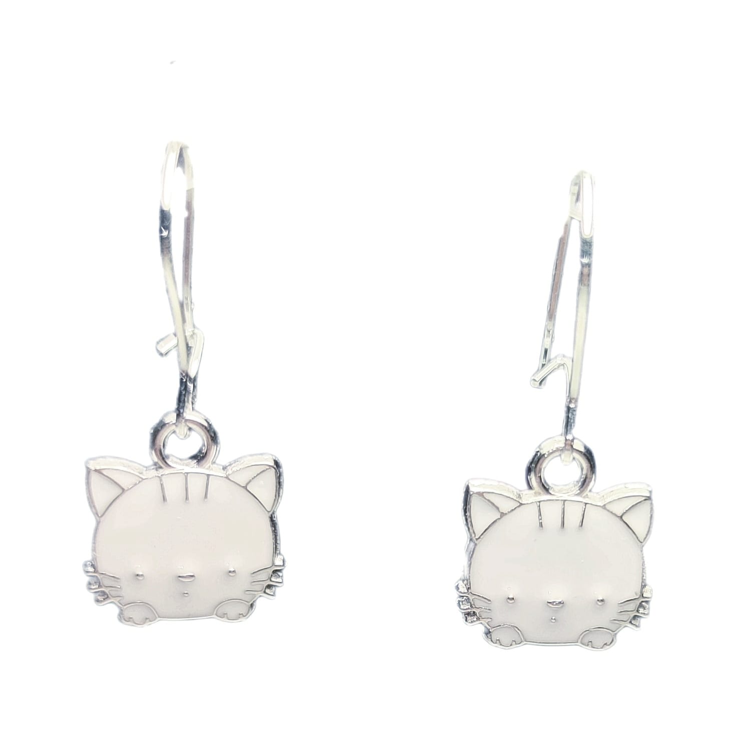 Kolczyki w kształcie pary słodkich postaci hello kitty w kolorze biało srebrnym.