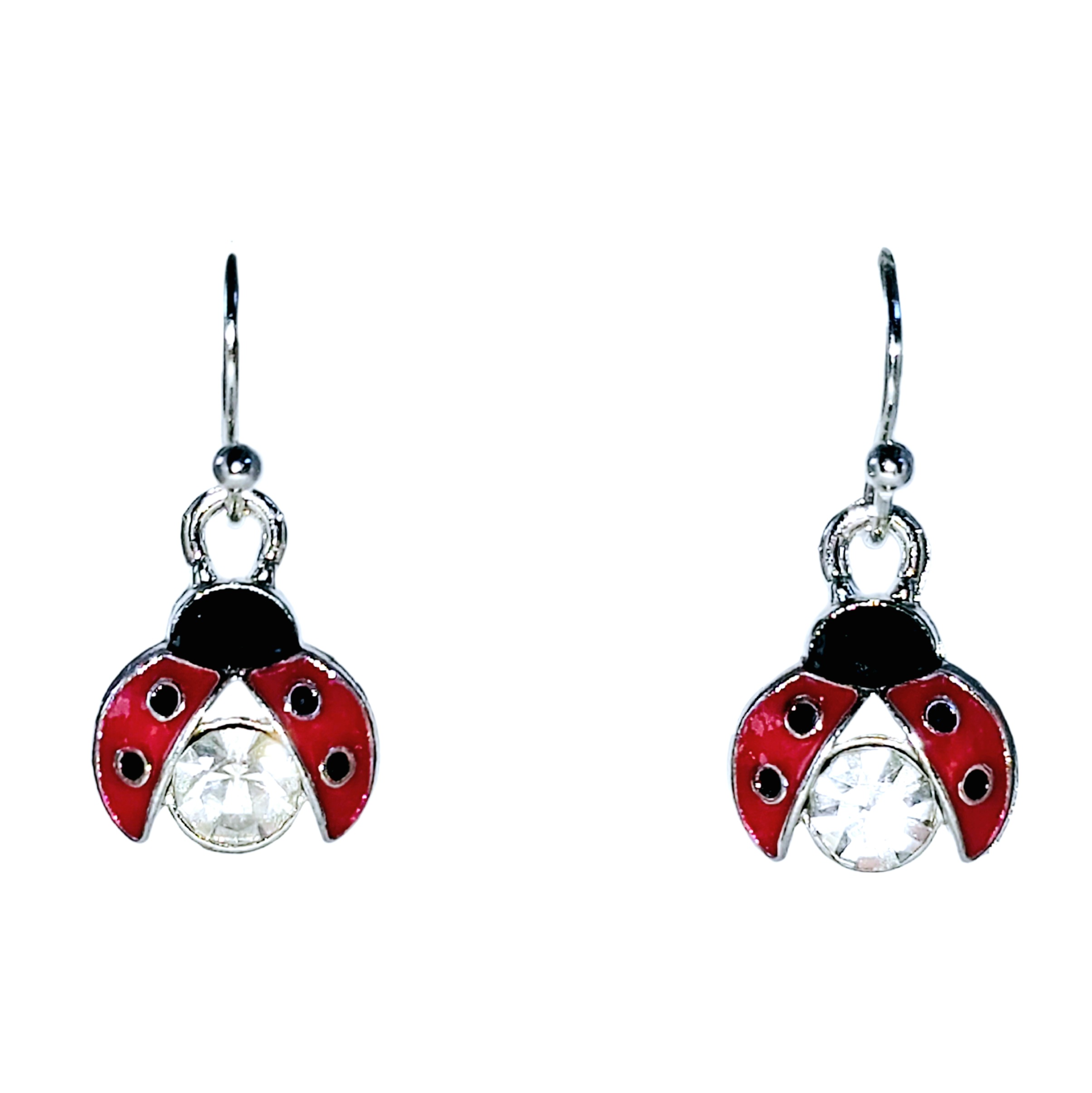 Kolczyki z zawieszkami w kształcie słodkich biedronek z białymi cyrkoniami.