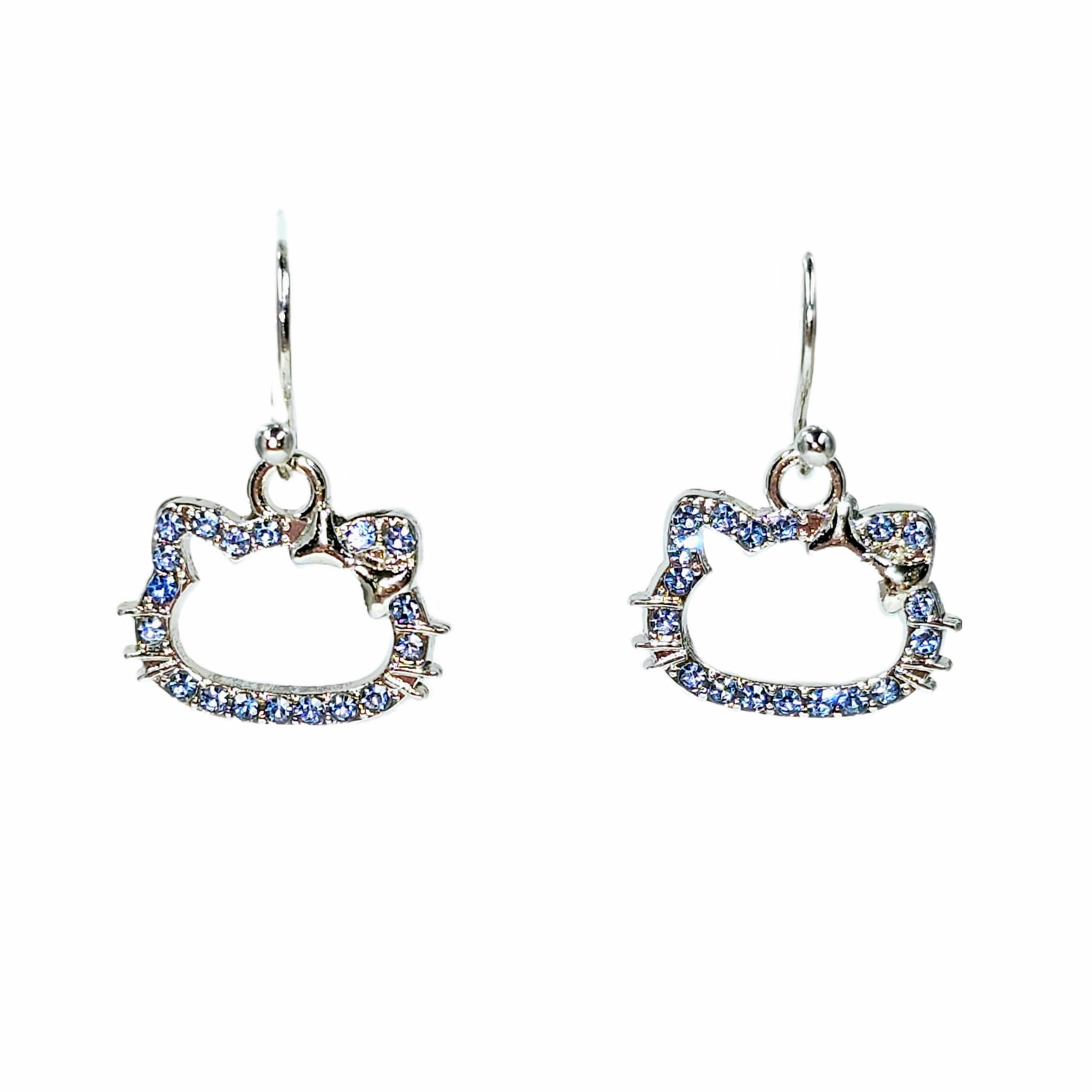 Kolczyki w kształcie pary słodkich postaci hello kitty wypełnionych niebieskimi cyrkoniami.