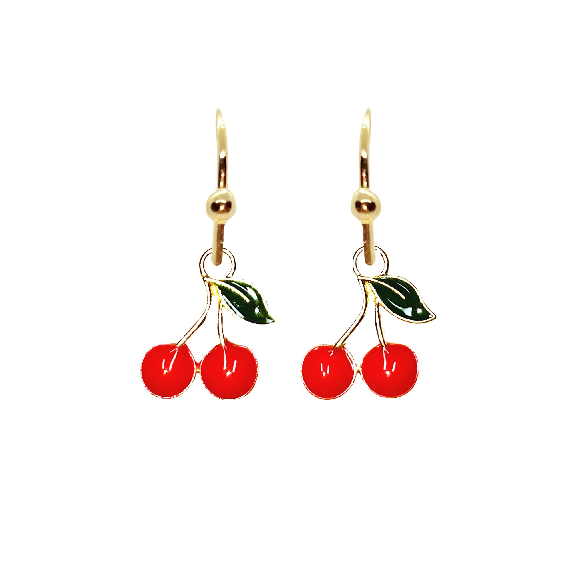 KOLCZYKI FUN OWOCE CZERWONO ZŁOTE WISIENKI EMALIOWANE (041)