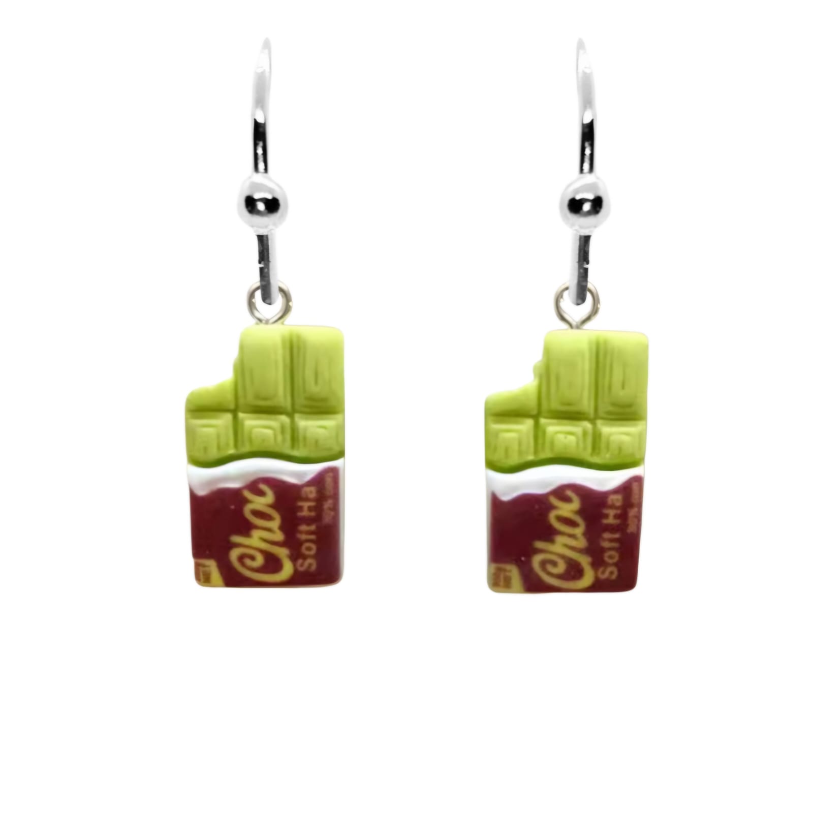 Kolczyki z zawieszkami w kształcie słodkiej, pistacjowej, dubajskiej czekolady.