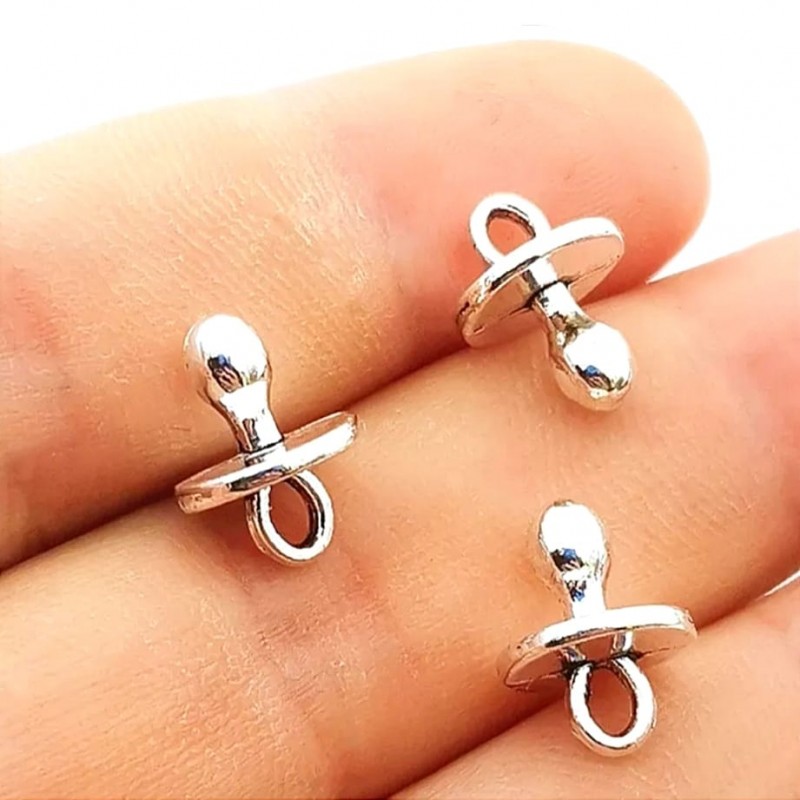 Kolczyki z zawieszkami w kształcie bardzo klasycznych symboli związanych z małym bobasem w kolorze srebrnym.