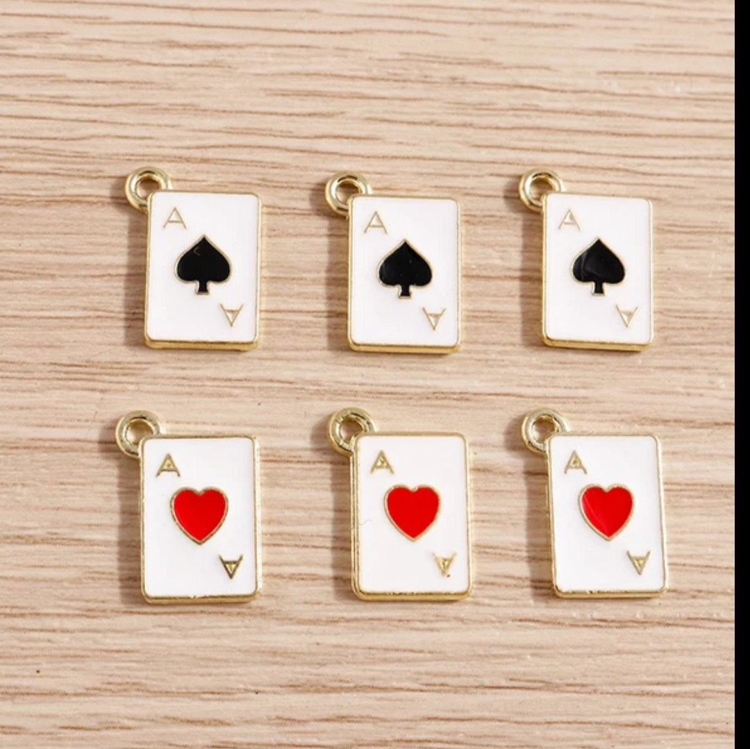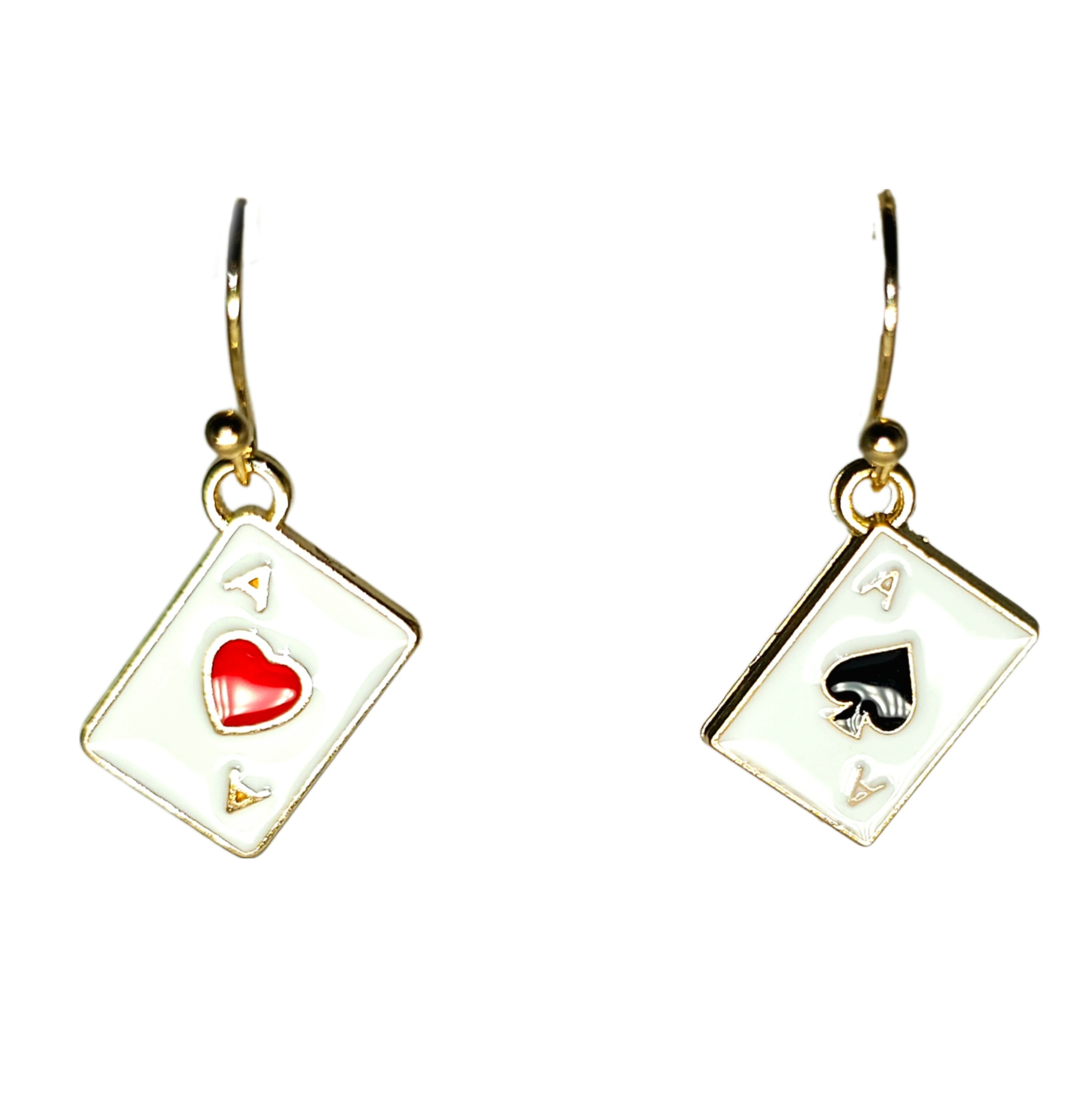 Kolczyki w kształcie kart do gry, asów kier i pik, najważniejszymi kartami w talii.