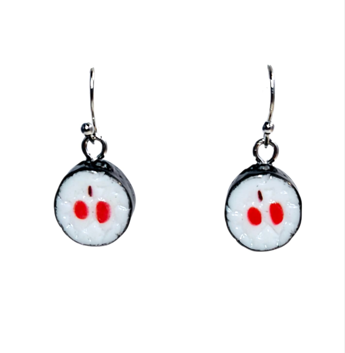 Kolczyki z zawieszkami w kształcie smakowitych kawałków sushi.