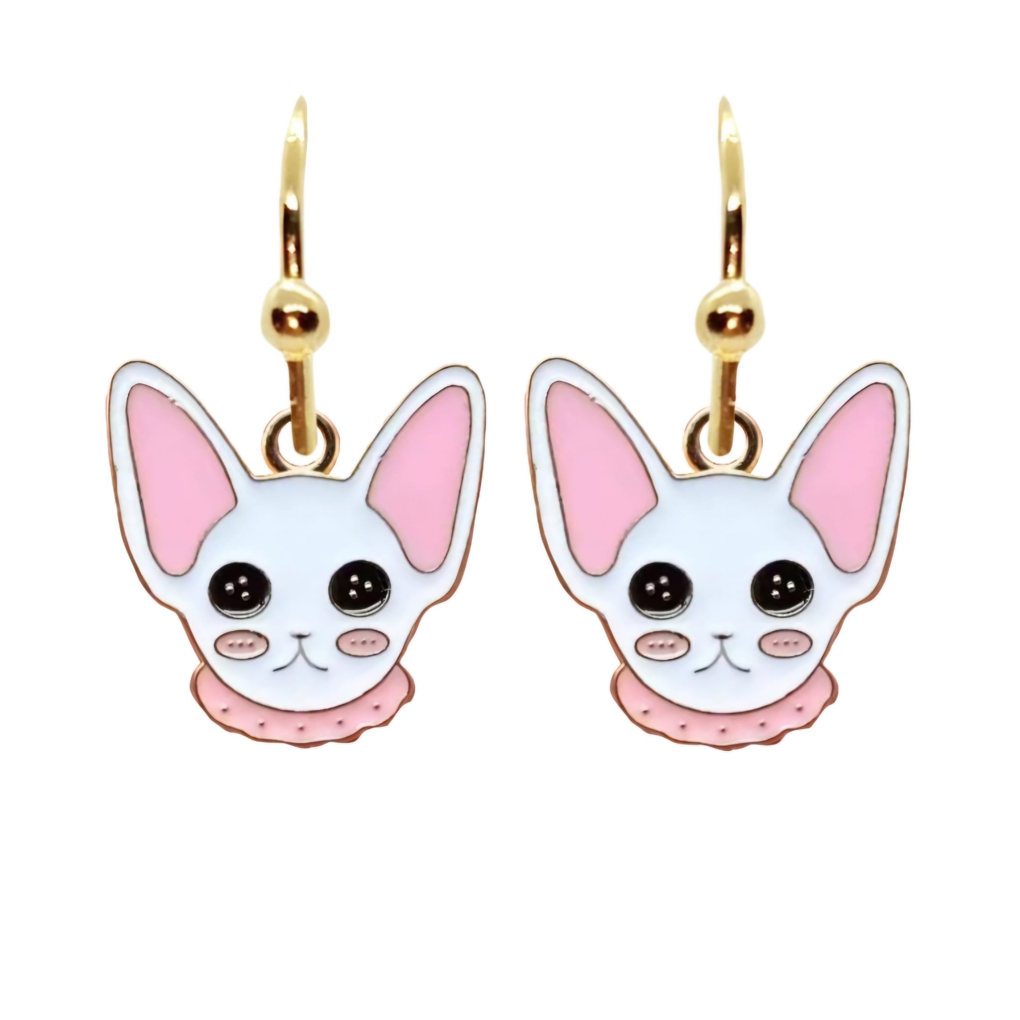 Kolczyki z zawieszkami w kształcie kotków rasy sfinks.