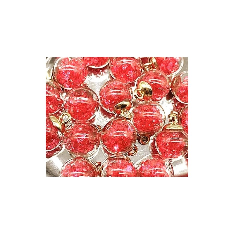 Kolczyki w kształcie szklanych kulek wypełnionych wypełnionych czerwonymi cyrkoniami.