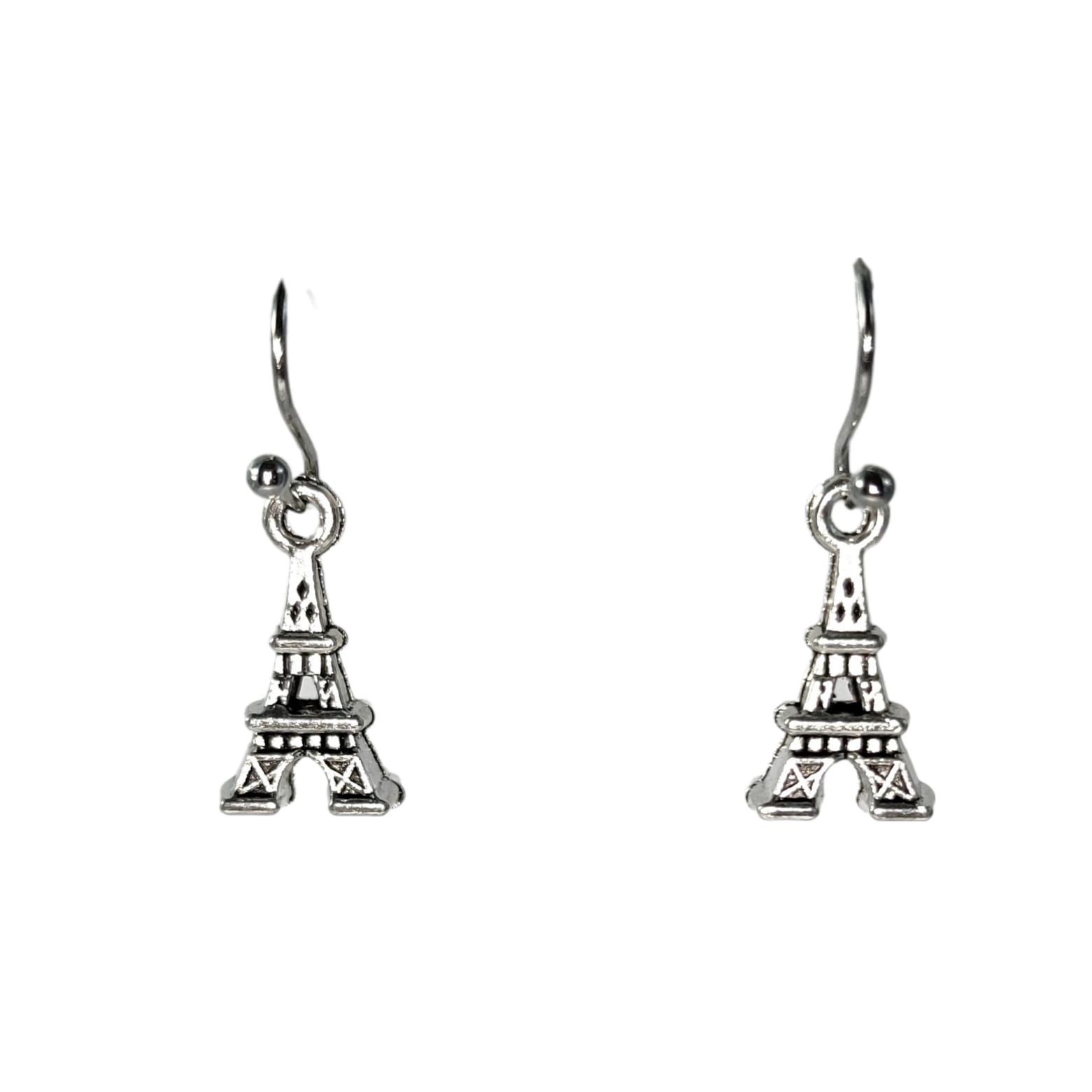 Kolczyki z zawieszkami w kształcie mini Wież Eiffla.