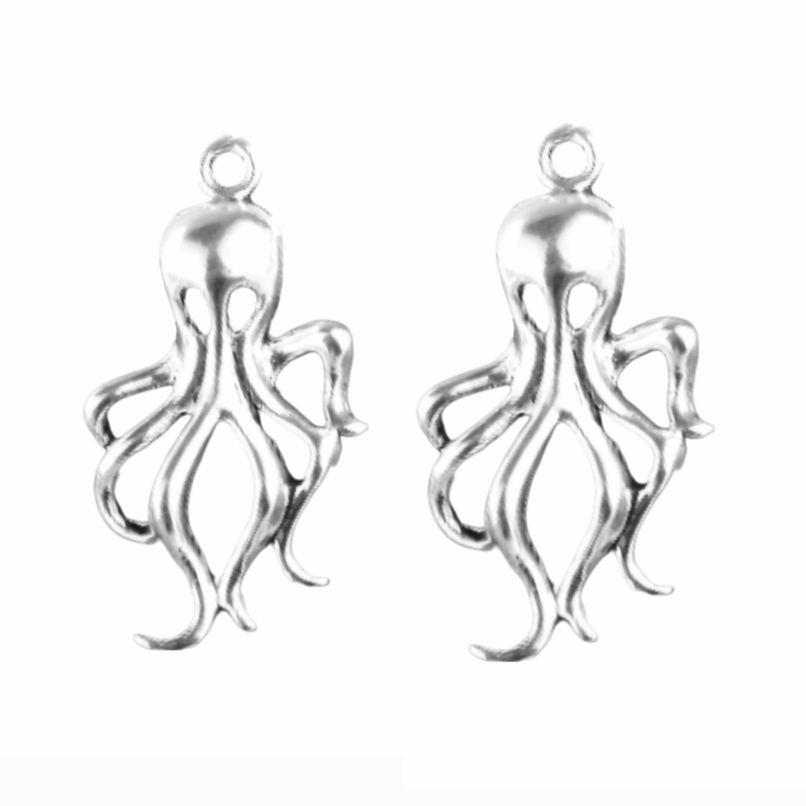 Kolczyki z zawieszkami w kształcie ożywionych ośmiorniczek.
