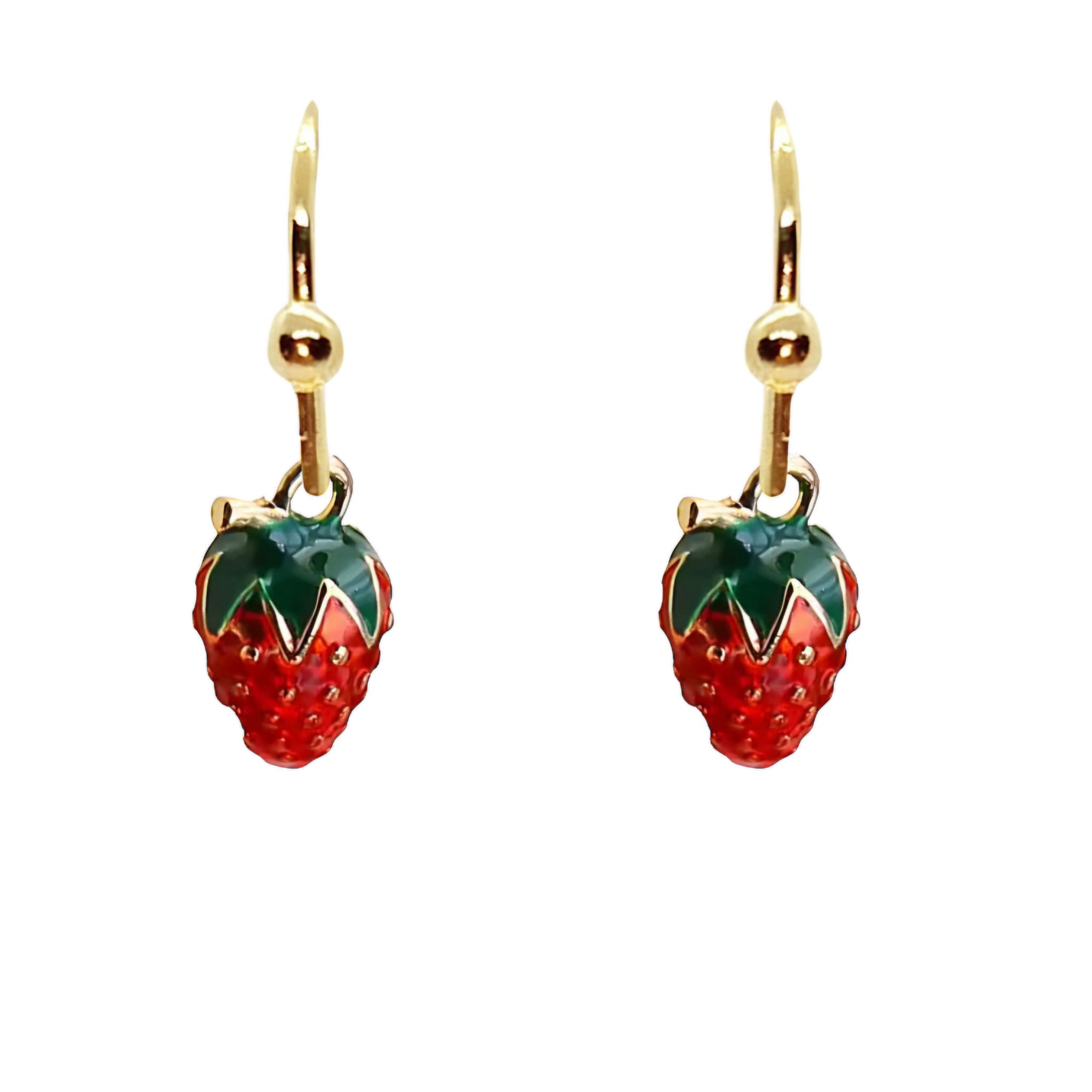 Kolczyki z zawieszkami w kształcie pięknie odwzorowanych poziomek.