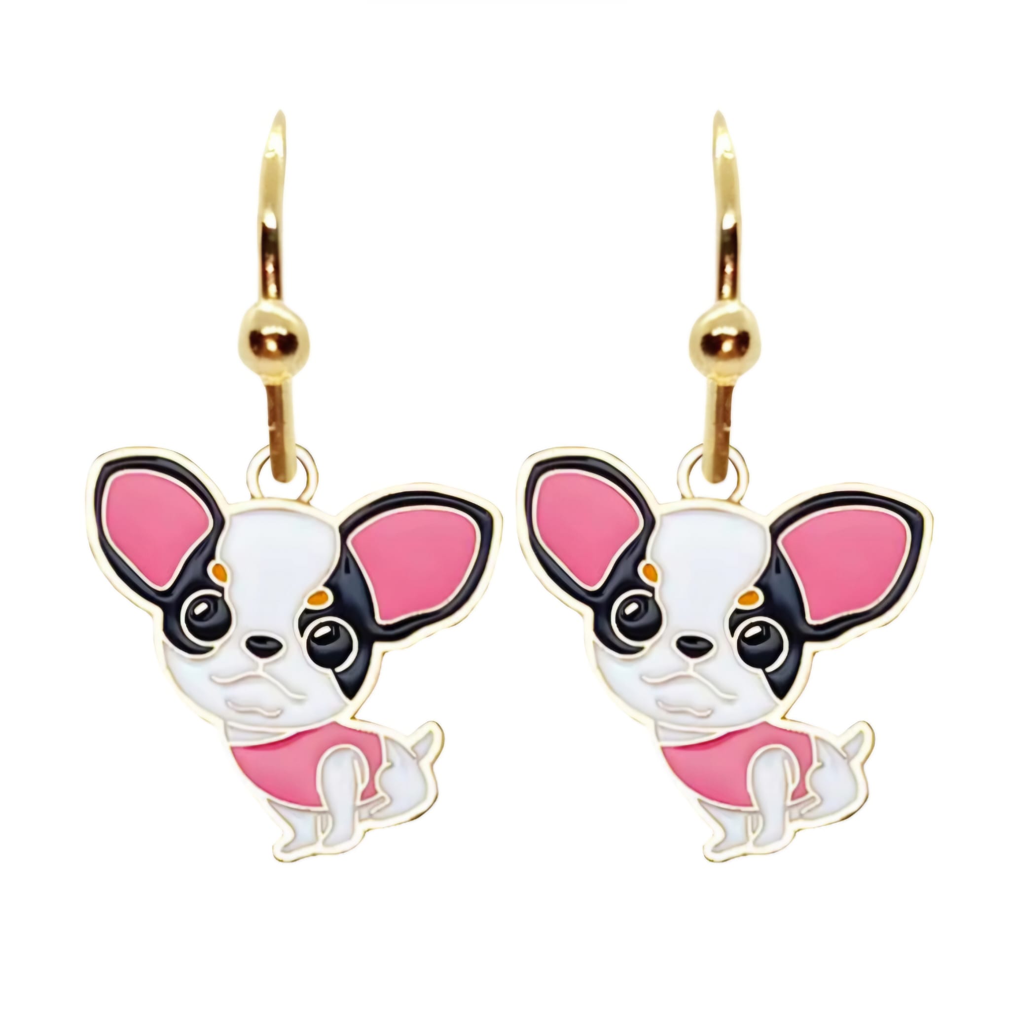 Kolczyki z zawieszkami w kształcie małych, słodkich chihuahua.
