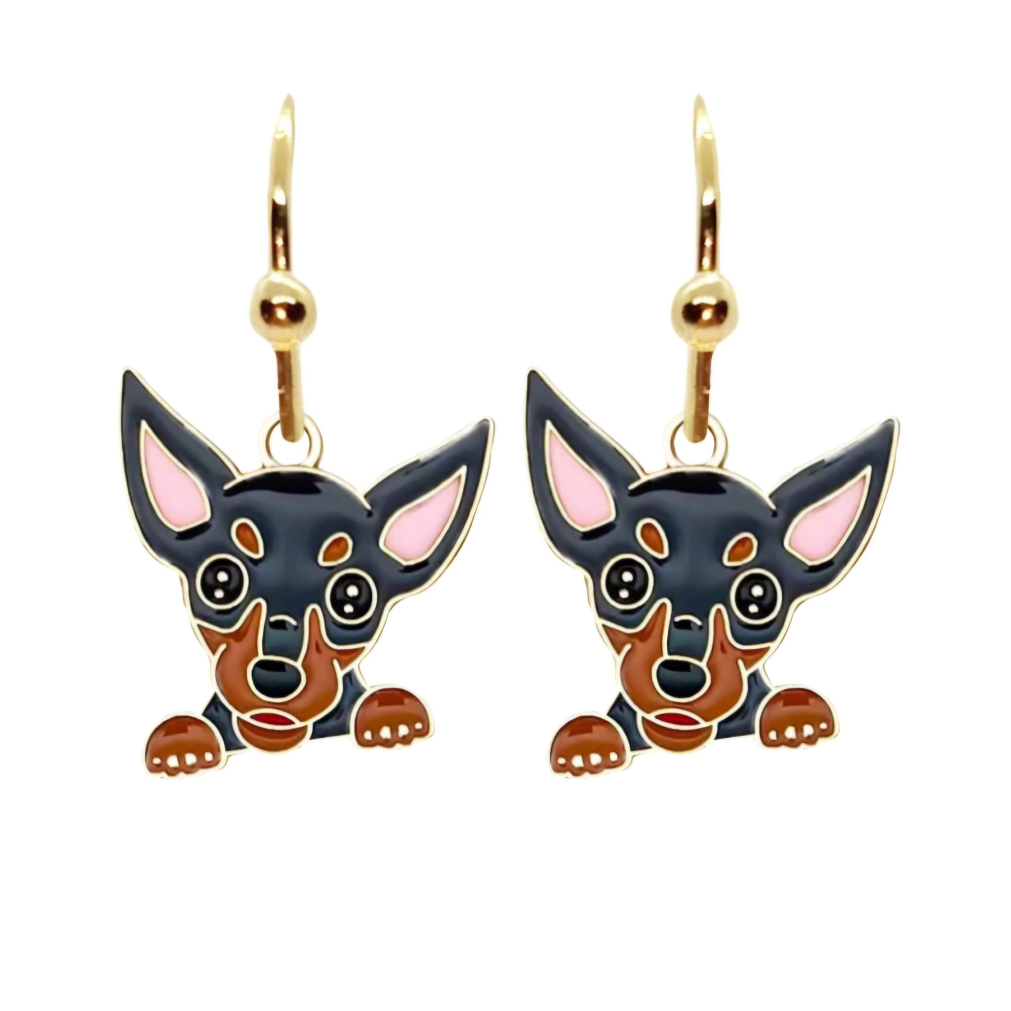 Kolczyki z zawieszkami w kształcie małych, słodkich jamniczków.