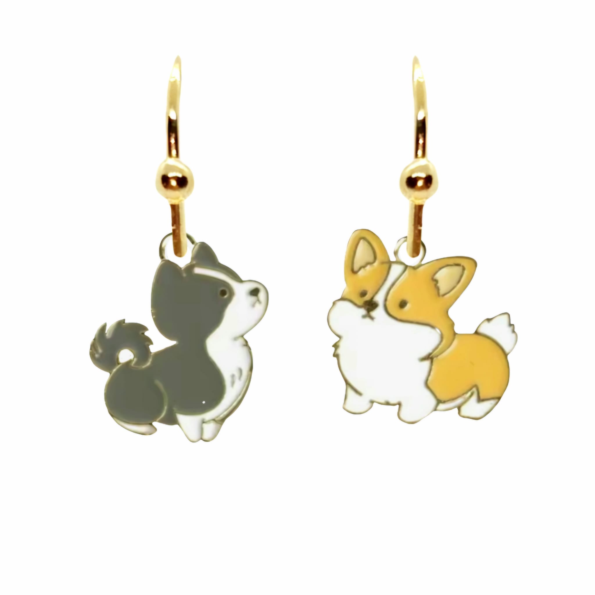 Kolczyki z zawieszkami w kształcie wesołych piesków.