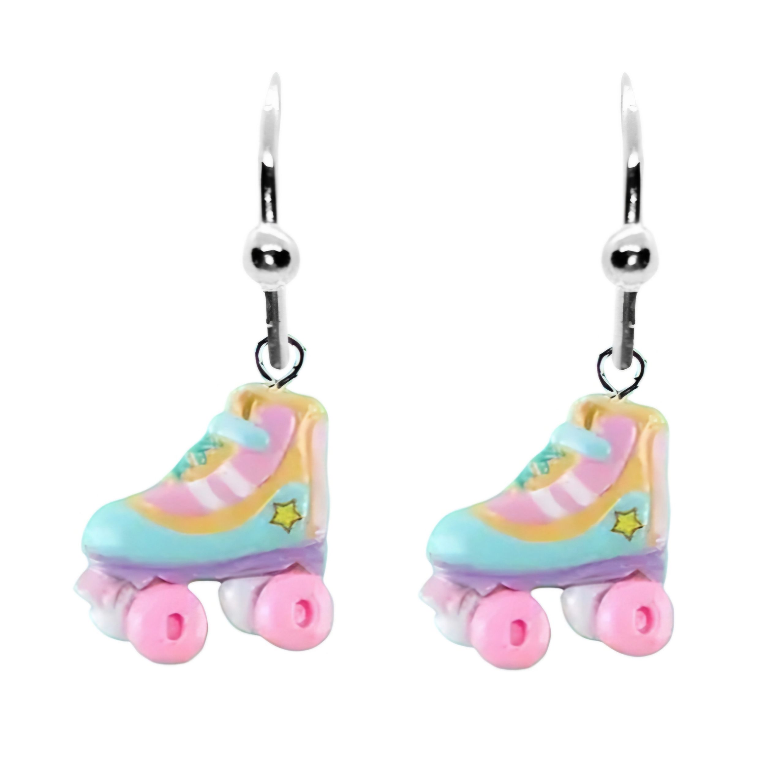 Kolczyki w kształcie kolorowych, pastelowych wrotek.