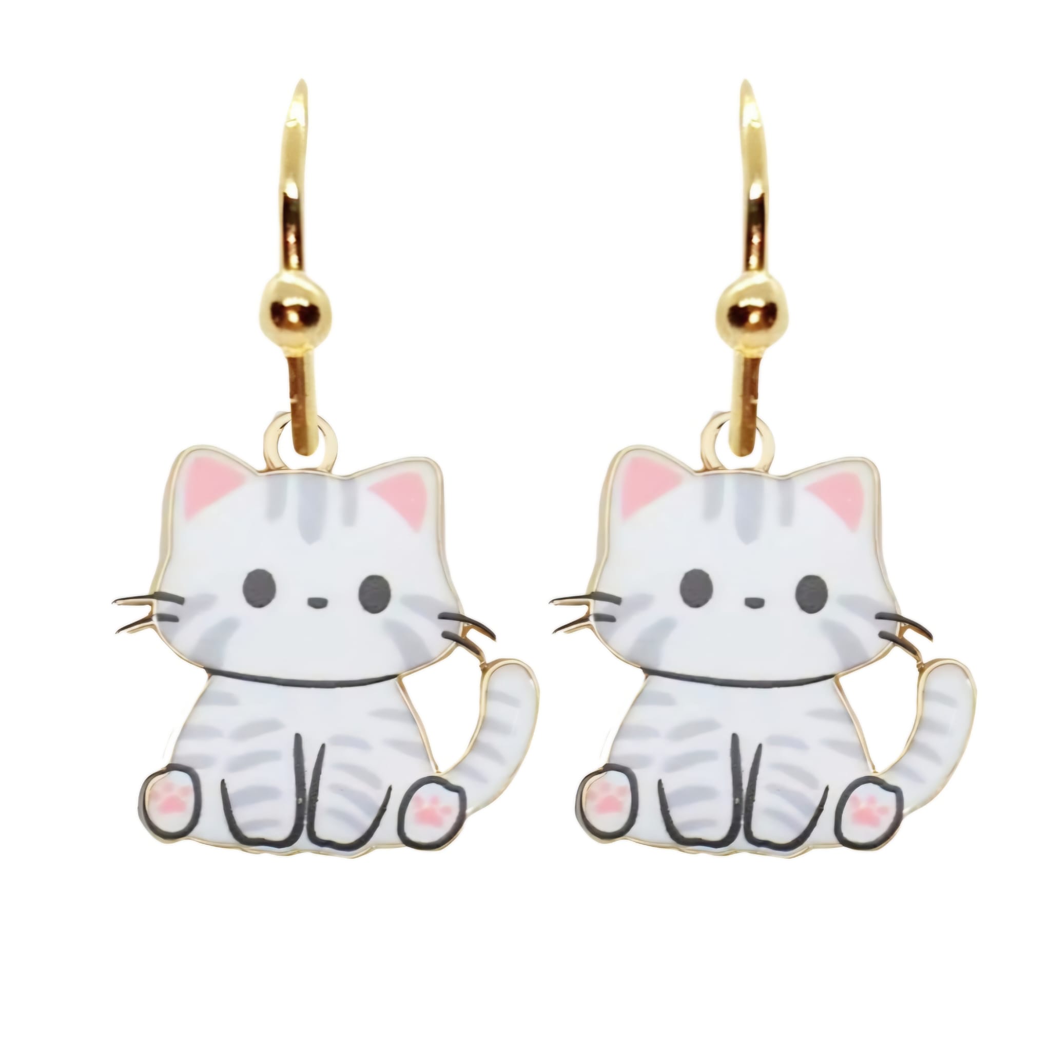 Kolczyki z zawieszkami w kształcie biało-szarych kotków.