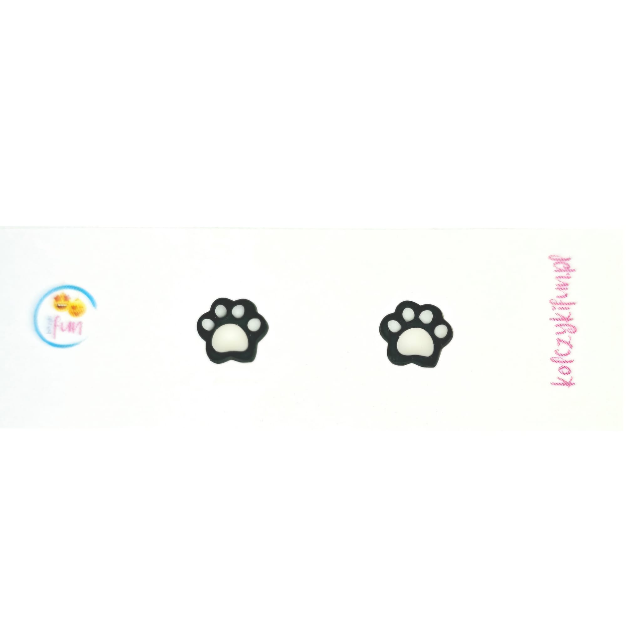 Kolczyki na sztyfcie z małymi czarnymi łapkami kotka lub pieska.