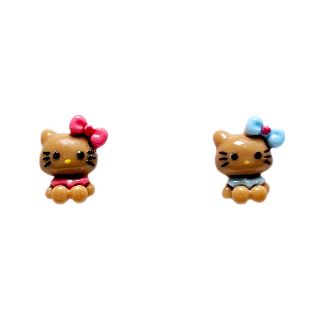 Kolczyki na sztyfcie z wizerunkiem hello kitty jak z mlecznej czekolady.