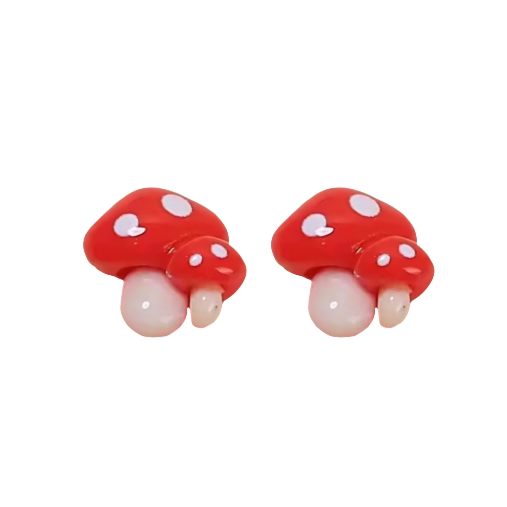 Kolczyki na sztyfcie z wizerunkiem małych muchomorków.