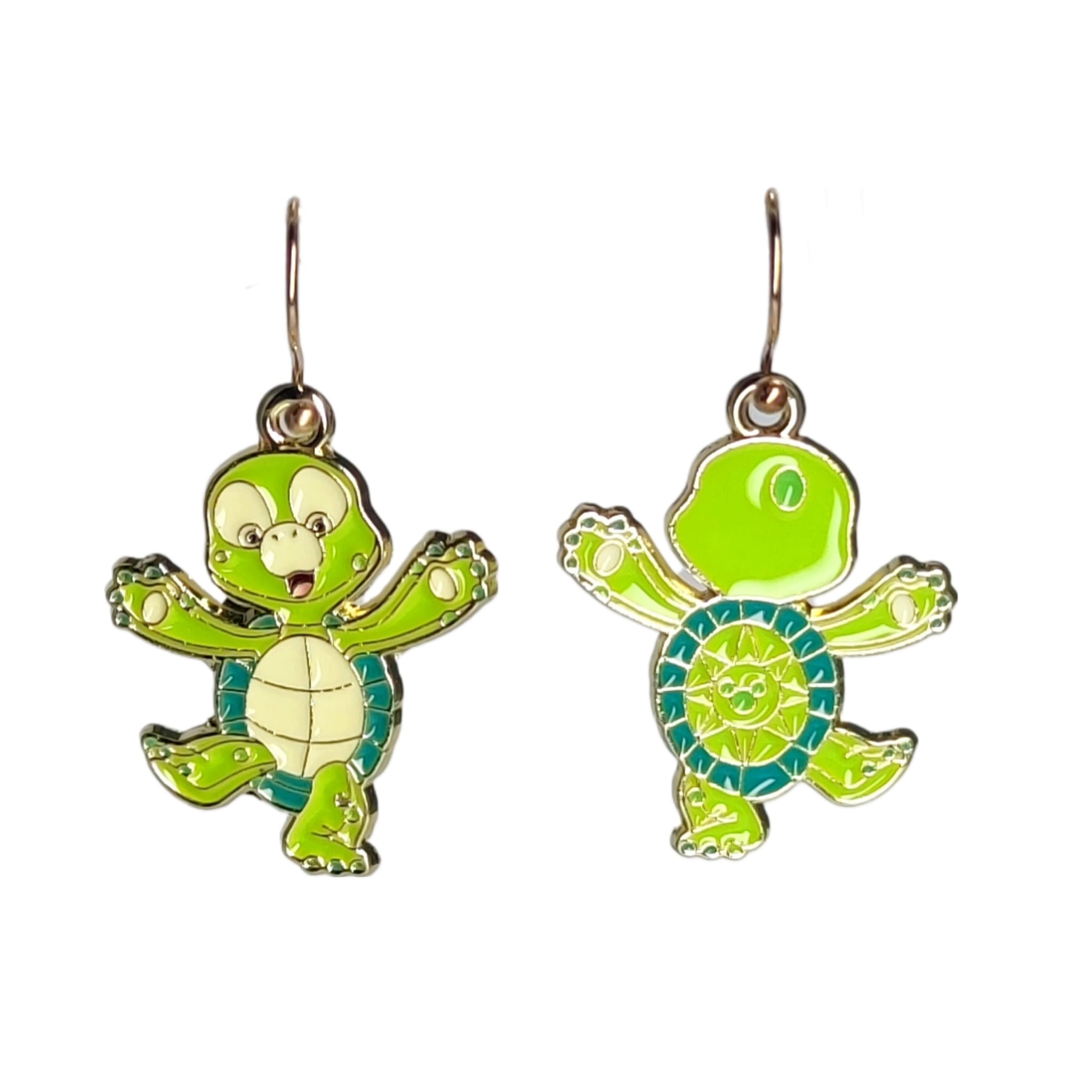 Kolczyki z zawieszkami w kształcie dwóch sympatycznych żółwików.