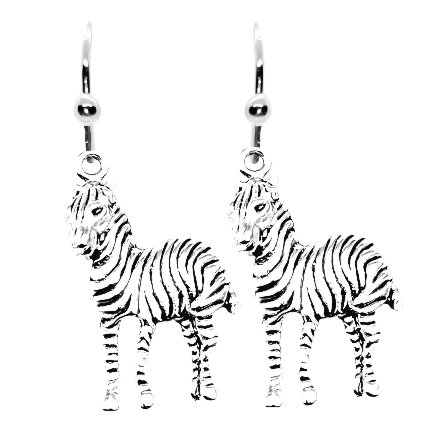 Kolczyki z zawieszkami z dwoma afrykańskimi zebrami.