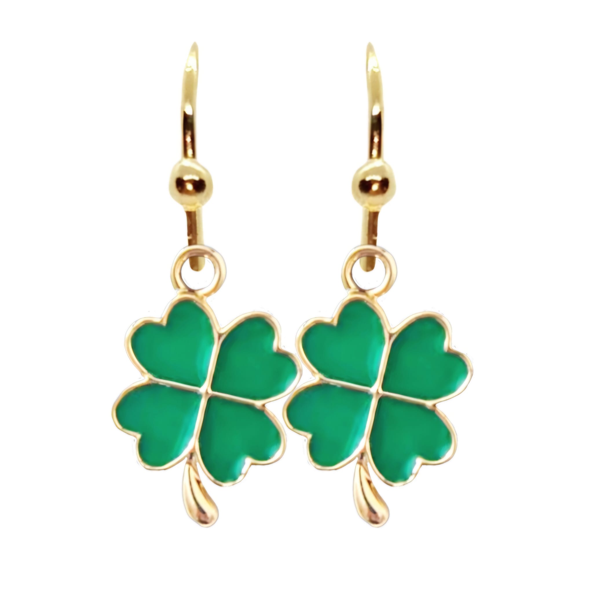Kolczyki z zawieszkami w kształcie pięknych, zielonych koniczynek na szczęście.