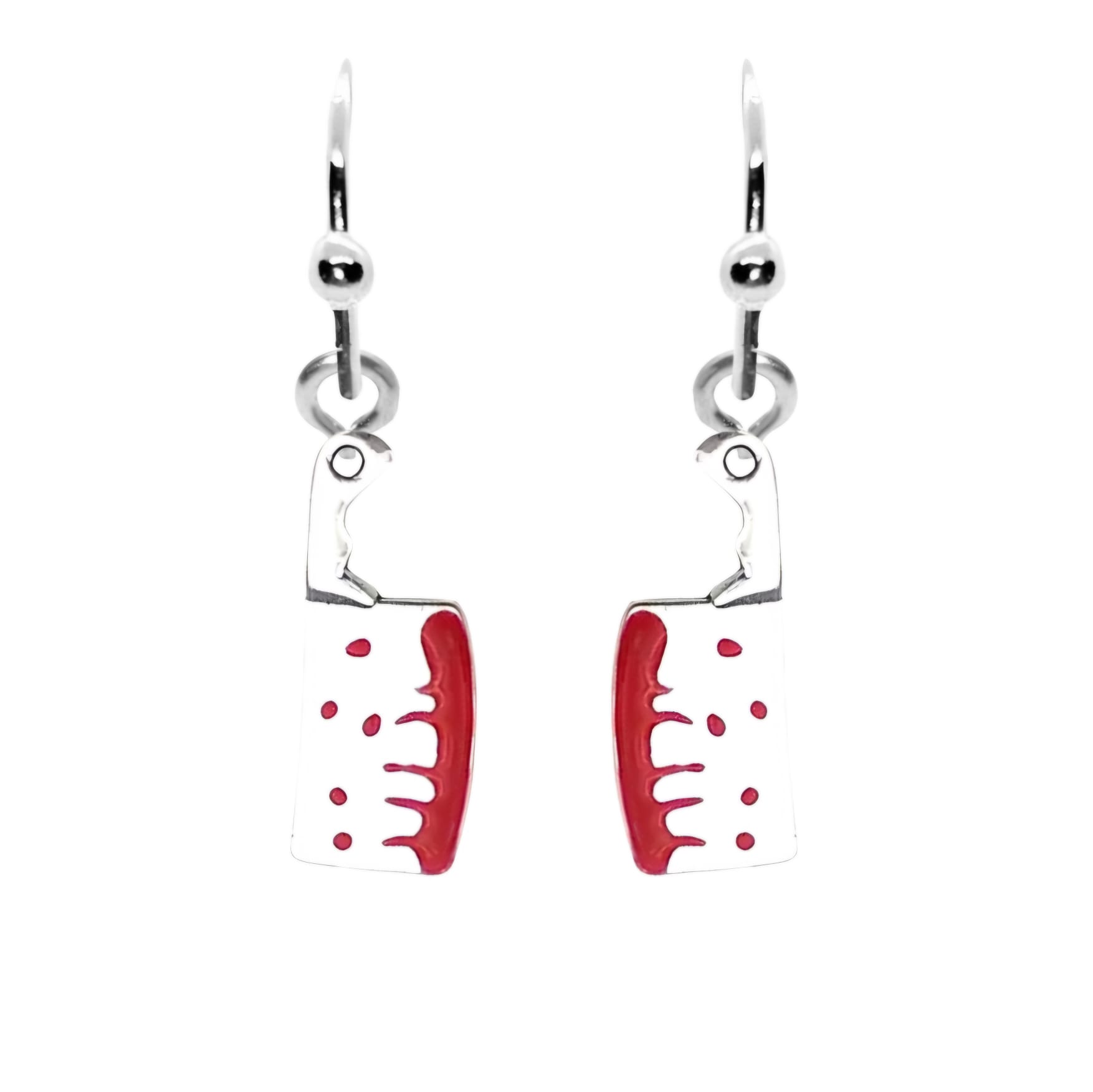 Kolczyki w stylu gotyckim z zawieszkami w kształcie zakrwawionych tasaków.