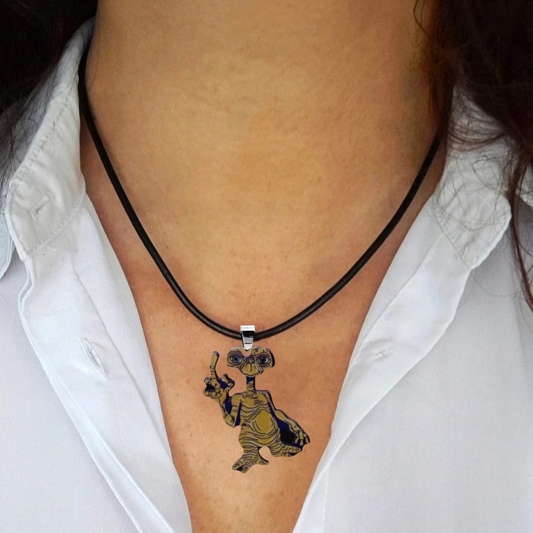 Naszyjnik z zawieszką w kształcie znanego starszemu pokoleniu kosmity E.T.