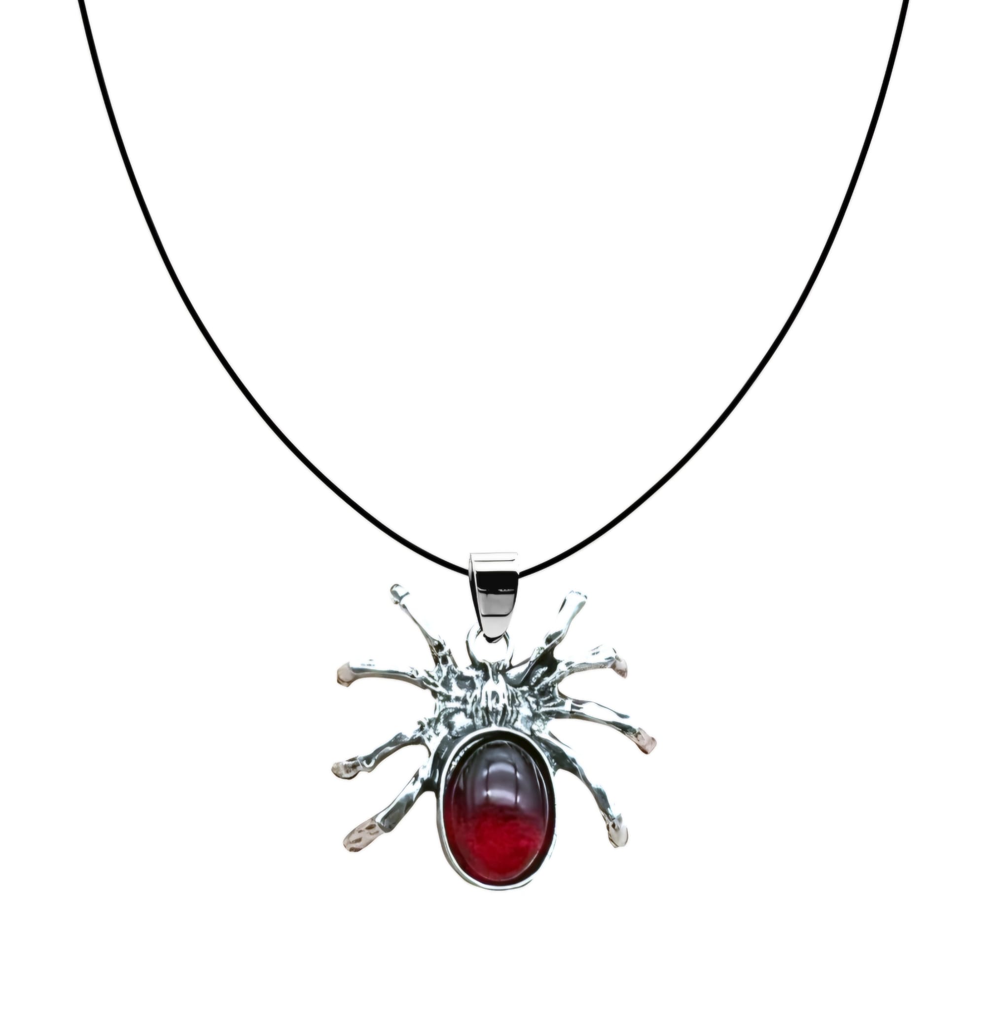 NASZYJNIK GOTYCKI DUŻY SREBRNY PAJĄK Z CZERWONYM KAMIENIEM (NG011)