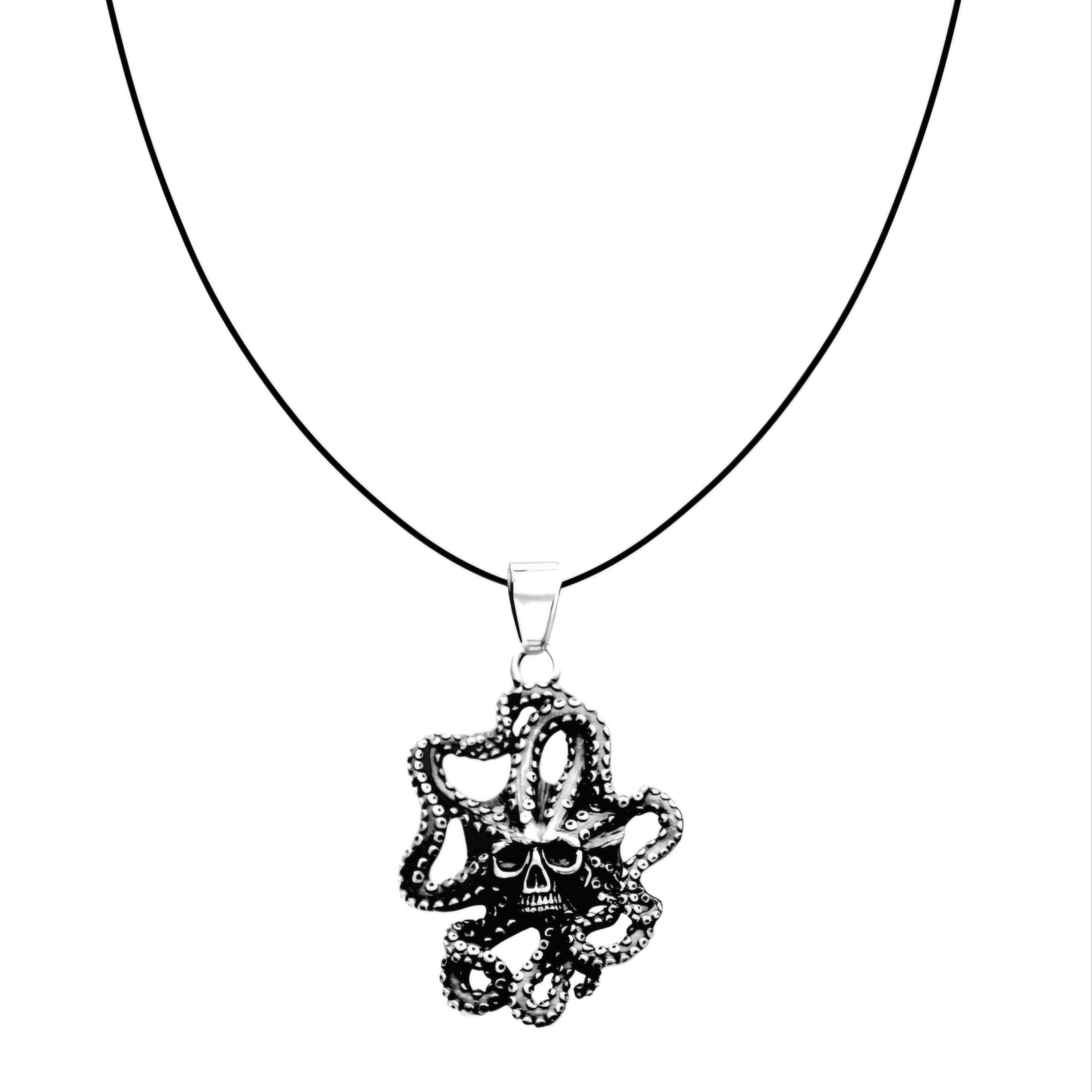 Naszyjnik w stylu gotyckim z zawieszką w kształcie ośmiornicy z czaszką.